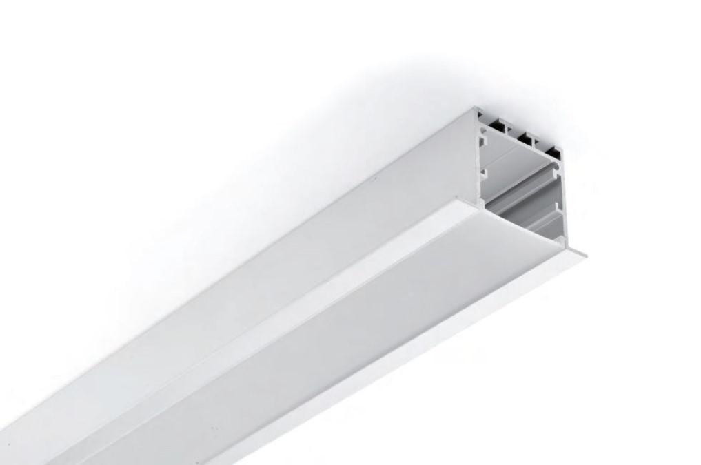 Denne aluminium profil (type 5035A) er ideel til indbygning i vægge, lofter eller trappetrin, og leveres med et opal cover.