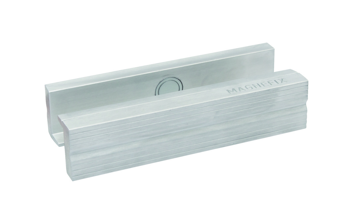 Aluminiumskæber til Bahco skruestik med kraftig magnet, der sikrer nem montering og fastholdelse.