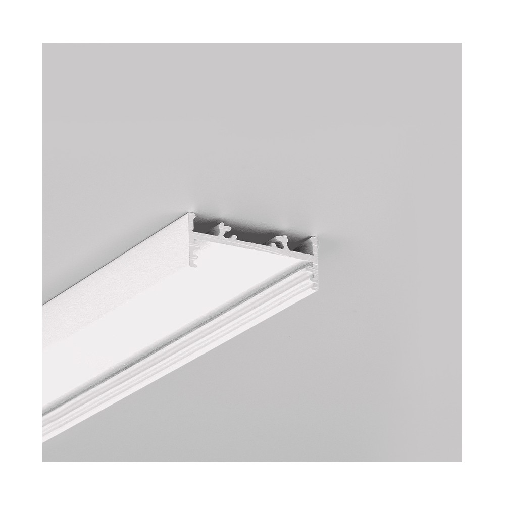 Aluminiumsprofil med påbygning og LED skinne i hvid lakeret finish. Længde: 2000 mm.