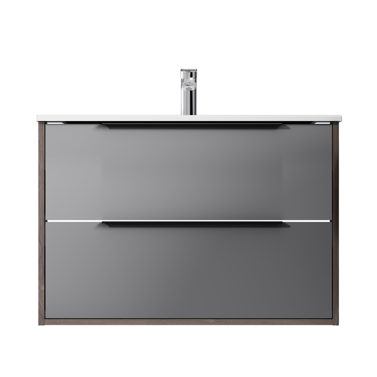 AM.PM Flash Vanty sæt i grå med 2 skuffer. Mål: 79,6 x 48,2 x 54 cm. Med overløb, soft close og hanehul.