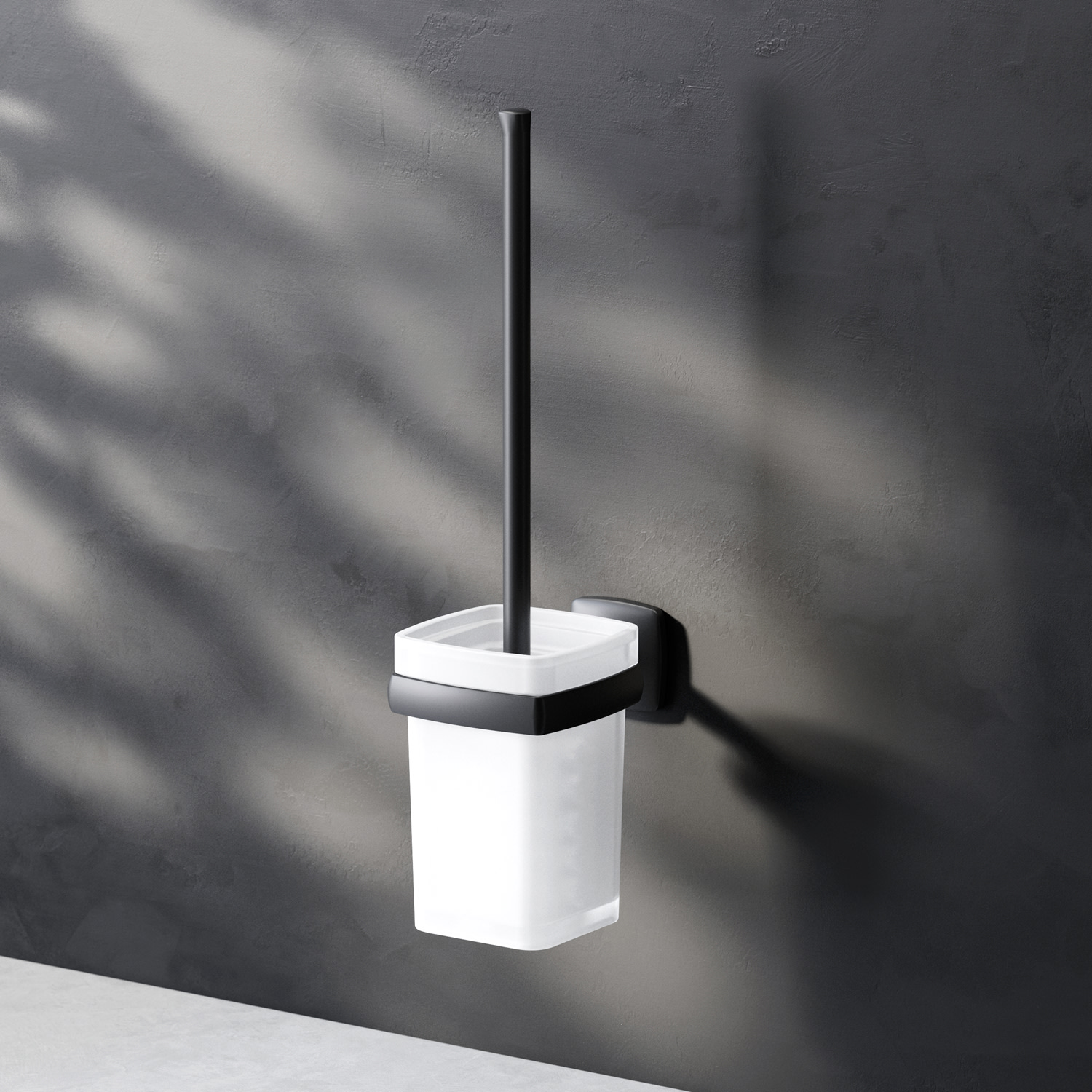 Toiletbørsten er designet til at være både praktisk og æstetisk tiltalende, og holderens dimensioner sikrer, at den passer diskret ind ved siden af toilettet. Den matte sorte finish giver et sofistikeret look.