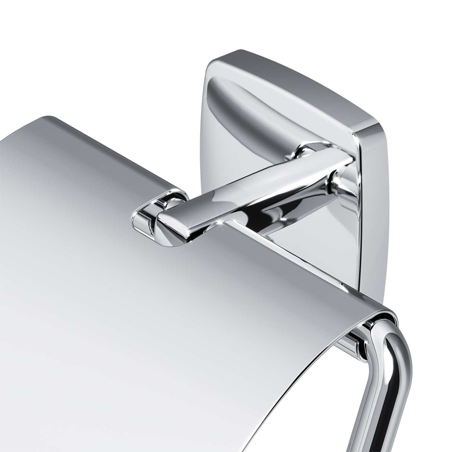 Stilfuld og funktionel toiletpapirholder med låg i blank krom. Mål: 122x101 mm.