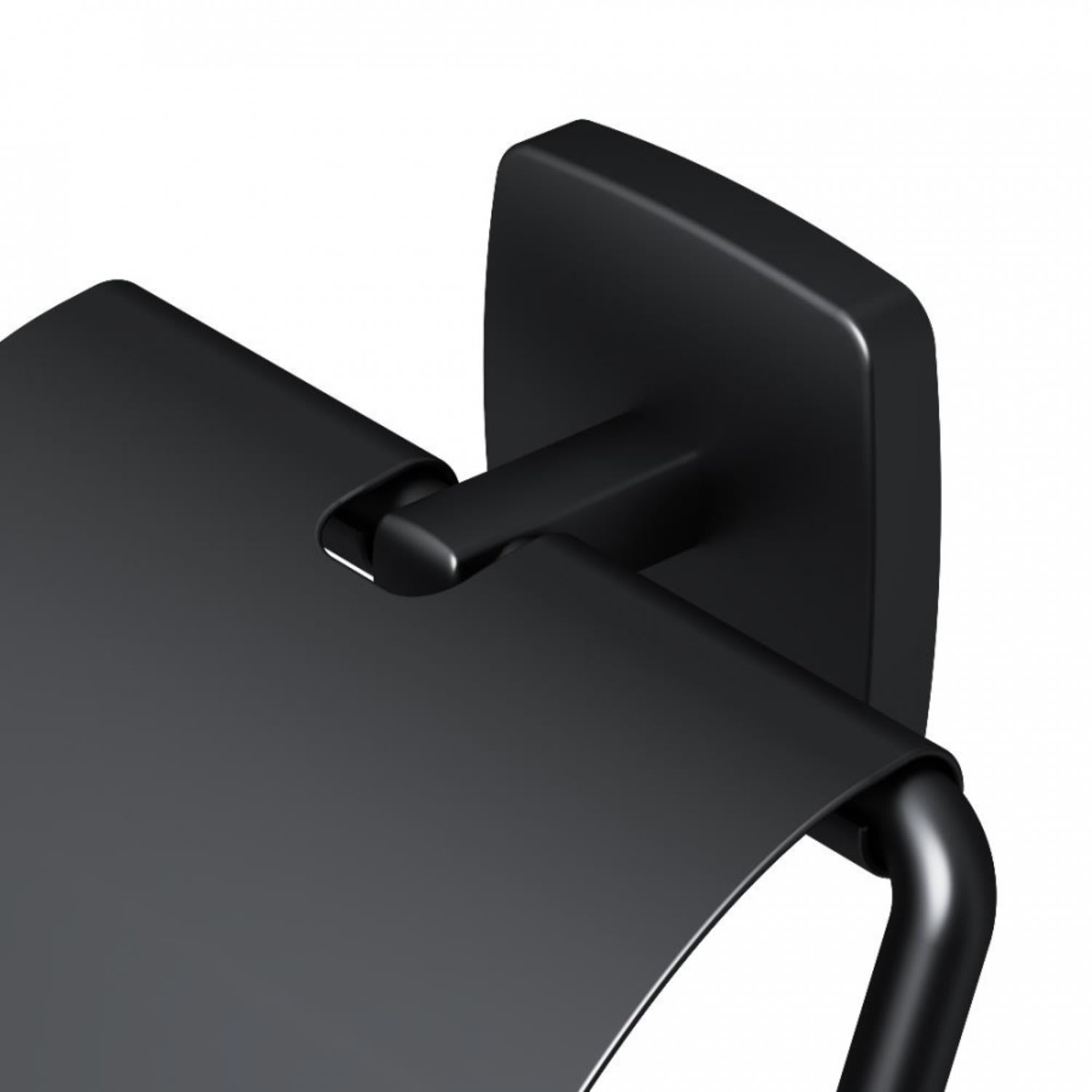 Stilfuld og funktionel toiletpapirholder med låg i mat sort finish. Mål: 122 x 101 mm.