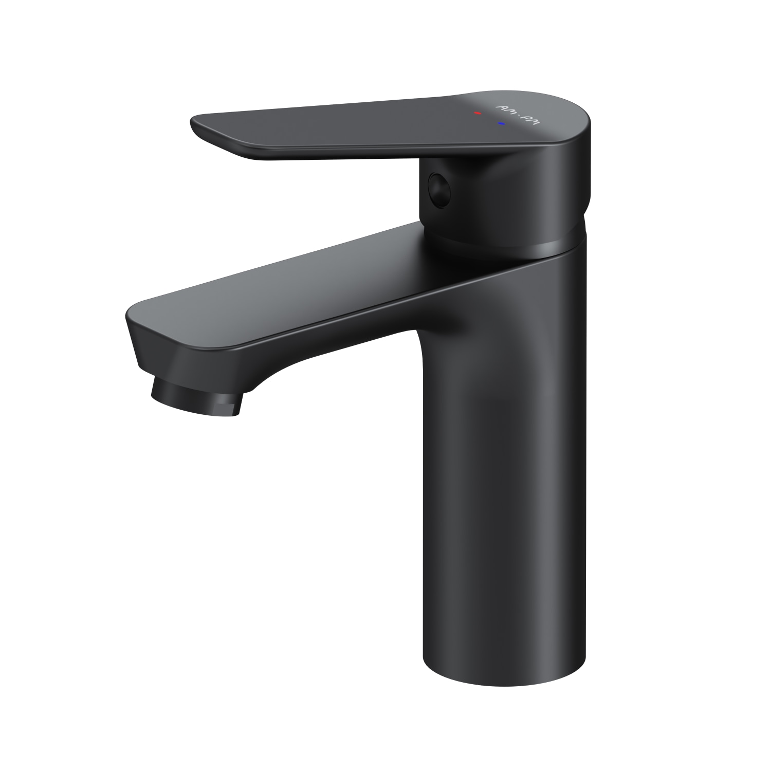 Stilfuldt og funktionelt et-grebs håndvaskarmatur fra AM.PM i sort finish. Fremstillet i messing med blank overflade.