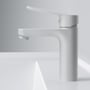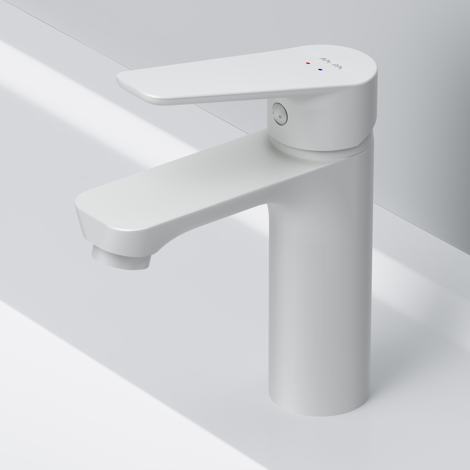 AM.PM Hit et-grebs håndvaskarmaturet i hvid, mat finish er designet til at komplementere moderne badeværelsesindretninger. Armaturet er fremstillet af messing og tilbyder en holdbar og stilren løsning til din håndvask. Den et-grebs betjening sikrer nem og præcis kontrol over vandtemperatur og -flow.