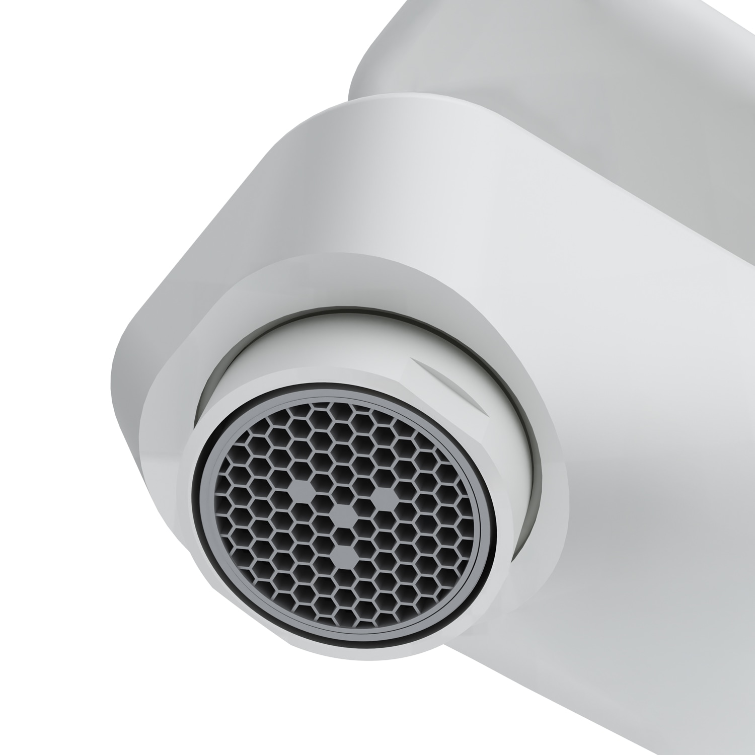 Hit et-grebs håndvaskarmatur fra AM.PM i hvidt, mat messingdesign til bord-/vaskmontering med 3/8" flexslanger.