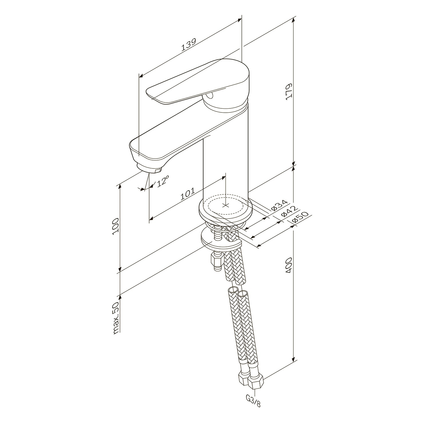 - Tilslutningsform: Flexslanger med 3/8" omløbere