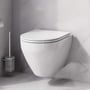Væghængt toilet fra AM.PM Spirit V2.0 i hvid, uden skyllekant og med rengøringsvenlig overflade. Kompakt design med skjult montering og toiletsæde inkluderet.