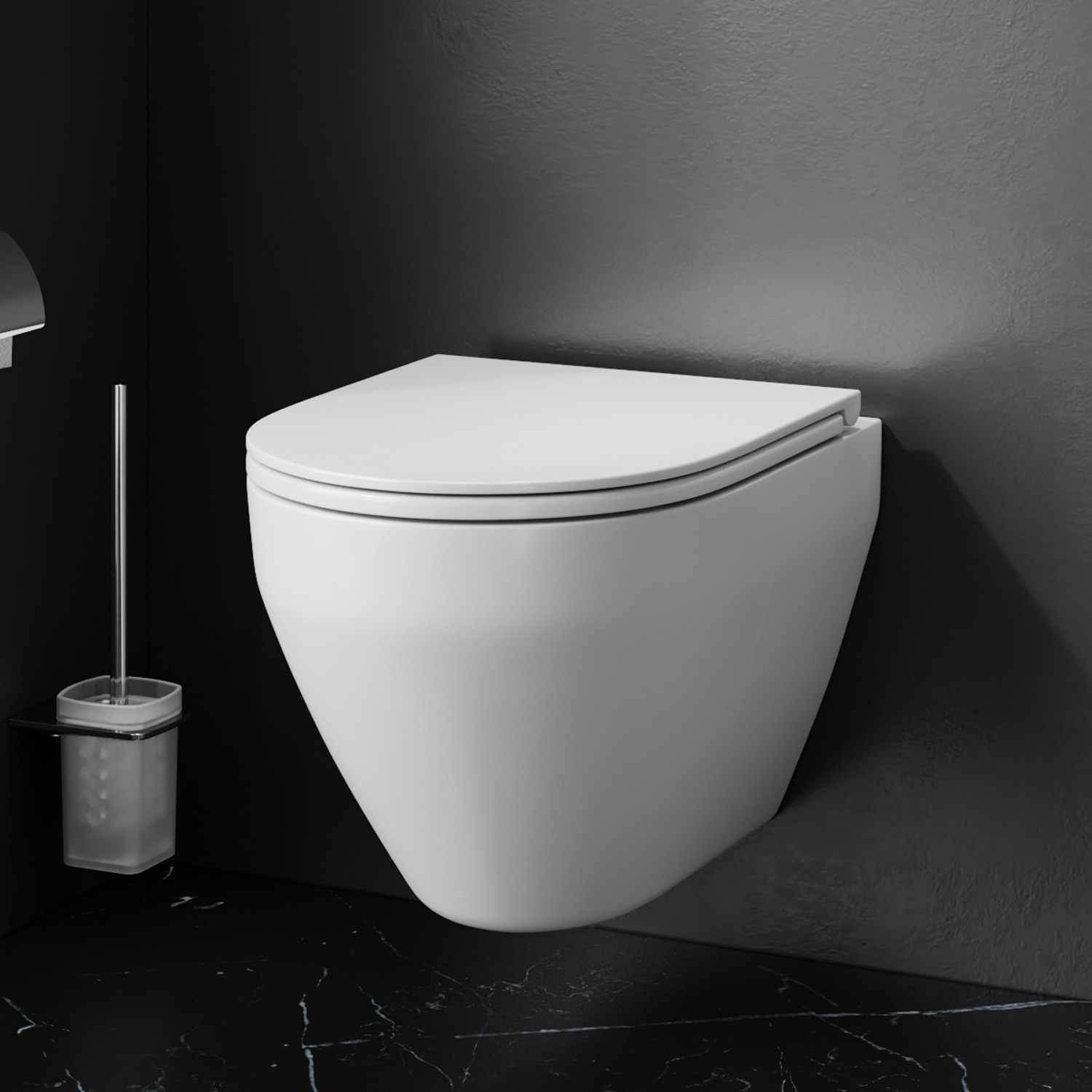 Dette kompakte toilet er udstyret med skjult montering, som giver et rent og uforstyrret udtryk på badeværelset. Med en dybde på 490 mm og en bredde på 365 mm passer det ind i de fleste badeværelser, selv de med begrænset plads. Toiletsæde er inkluderet, så du får en komplet løsning lige til at montere.