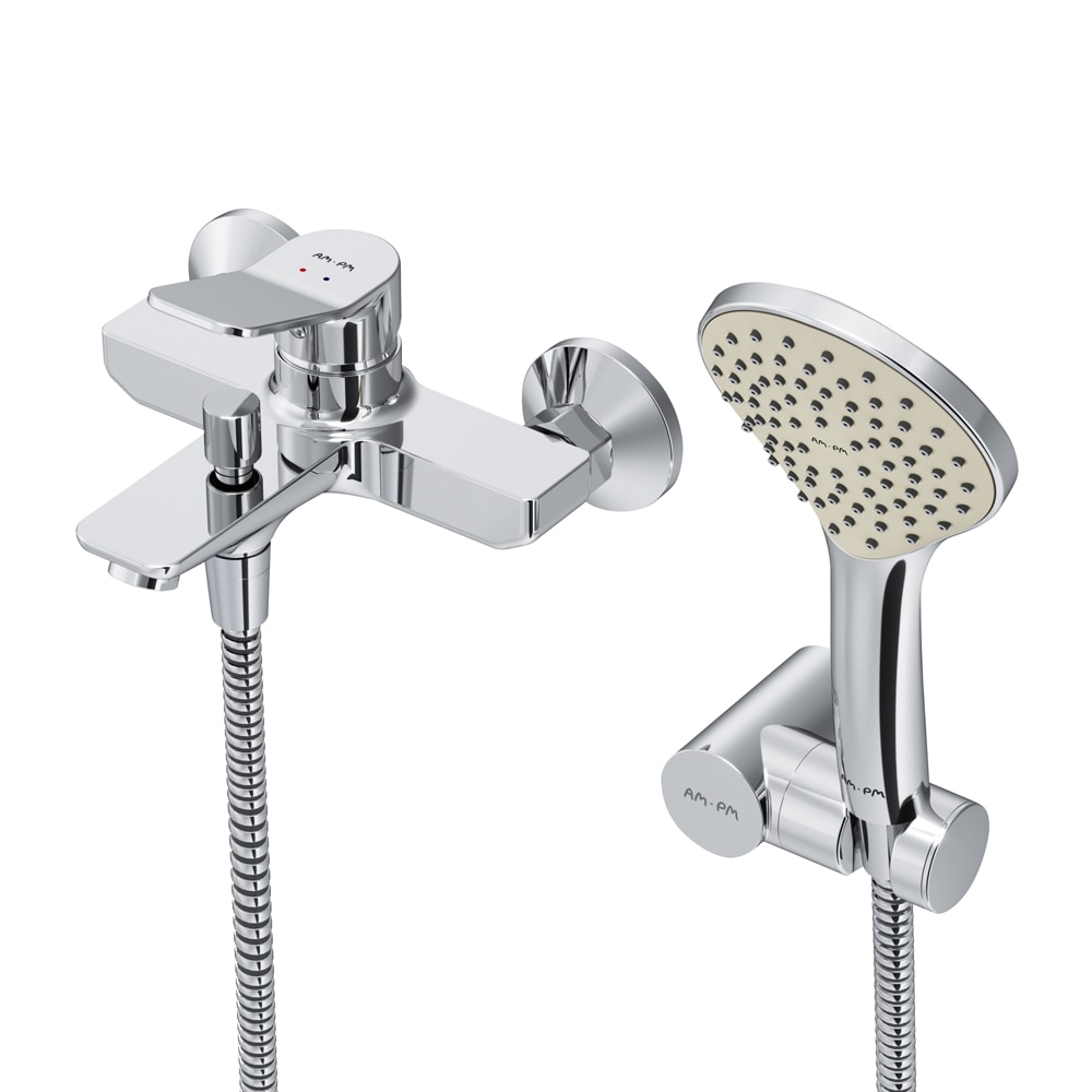 Elegant AM.PM X-Joy armatur i krom med håndbruser og 1750 mm bruseslange.