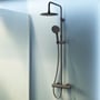 AM.PM X-Joy brusesæt i mat sort med termostat, 2-grebs betjening og 150 mm centerafstand. Inkluderer hovedbruser og håndbruser med skoldningsspærre.