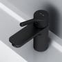 Elegant sort mat et-grebs håndvaskarmatur fra AM.PM. Fremstillet i messing med 3/8" flexslanger.