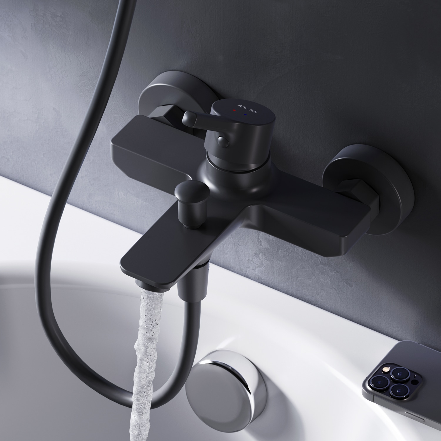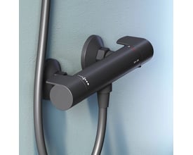 Elegant 1-grebs kararmatur fra AM.PM X-Joy S serien i mat sort messing. Traditionel montering med 150 mm centerafstand.
