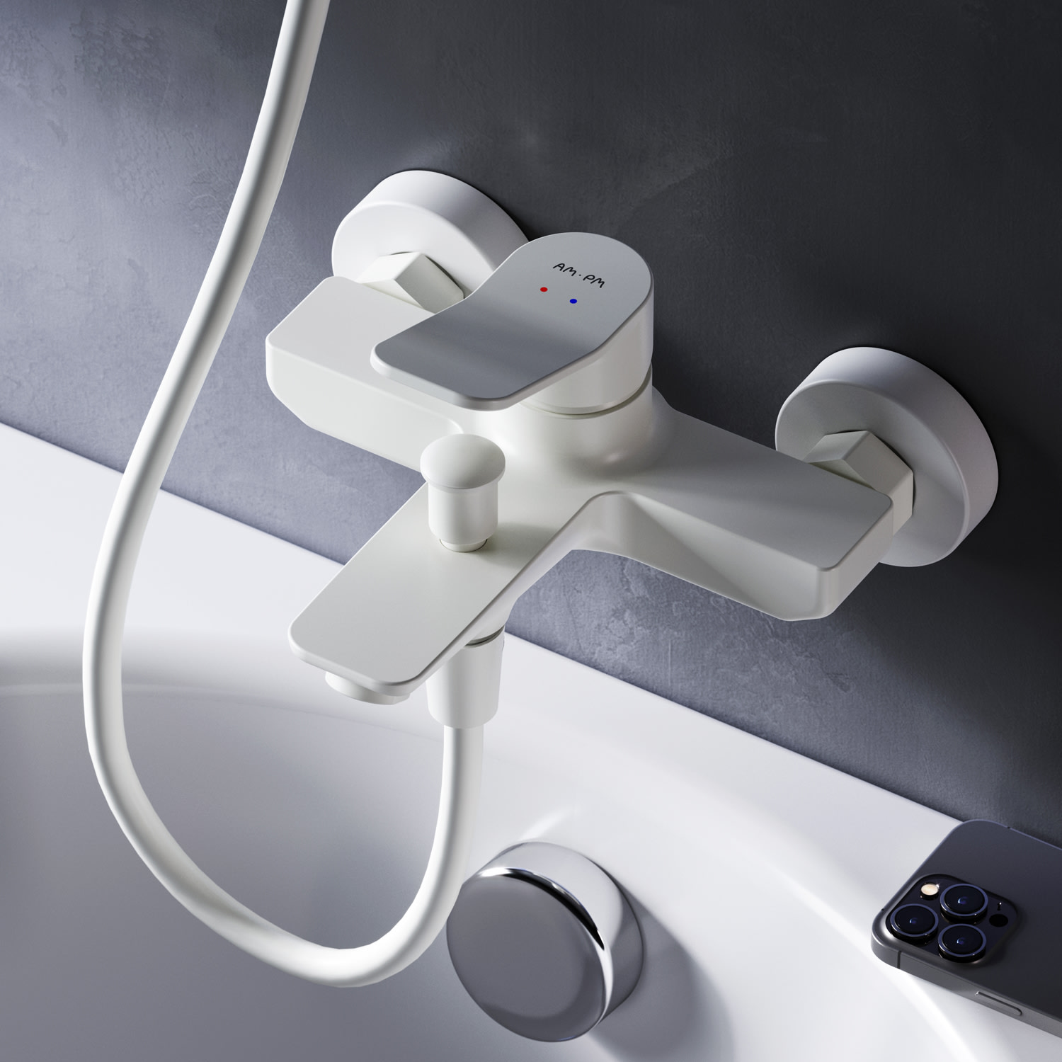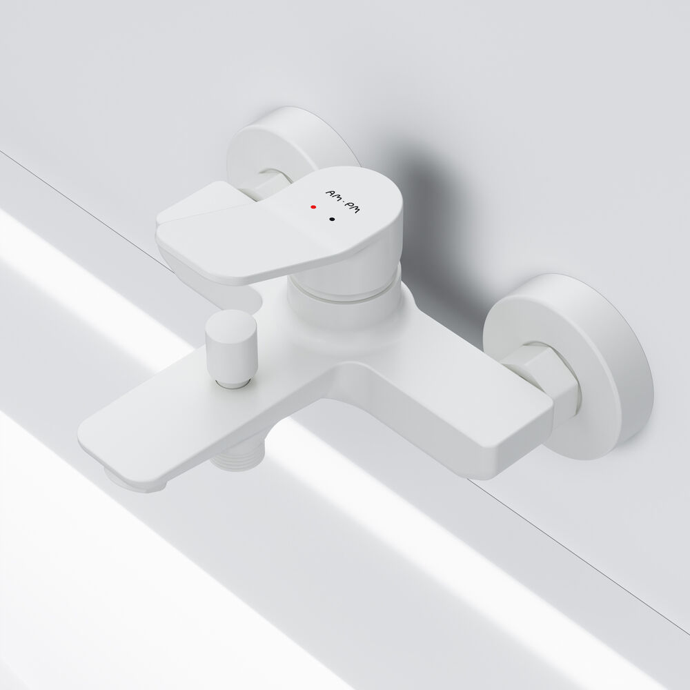 Stilfuldt 1-grebs kararmatur fra AM.PM i hvid mat finish. Fremstillet i messing med traditionel montering og 150 mm centerafstand.