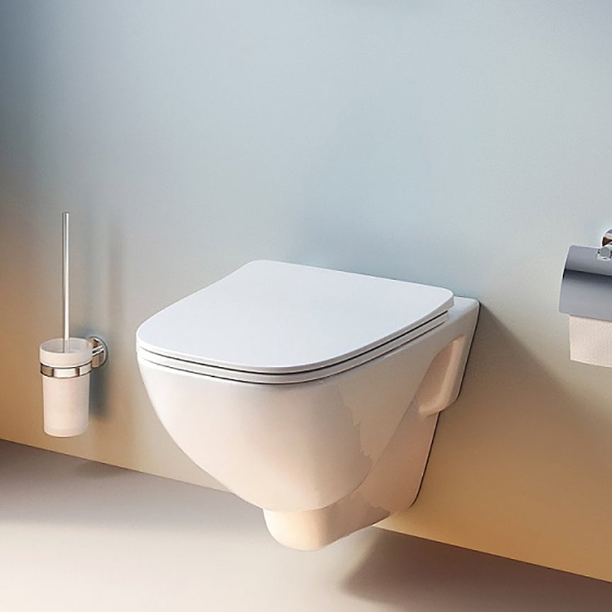 Komplet væghængt toiletsæt fra AM.PM i hvidt design. Inkluderer toiletsæde og trykplade.