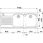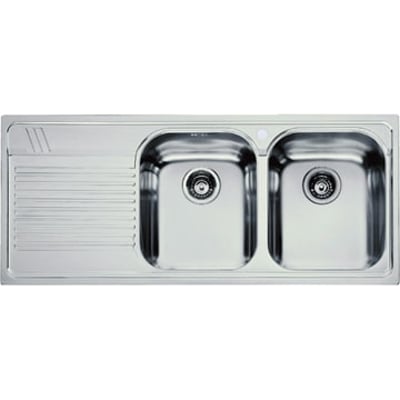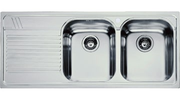 Solid køkkenvask i rustfrit stål. Med afløbsbakke, manuel kurveventil og mål: 1160x500 mm. Til skabsbredde 800 mm.