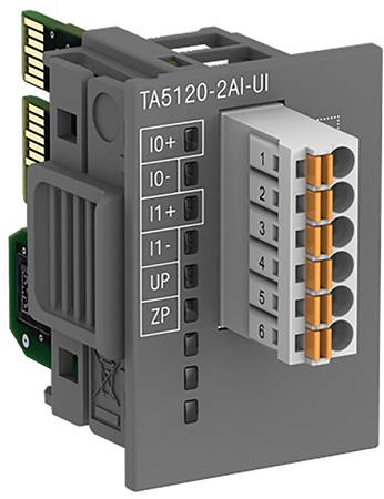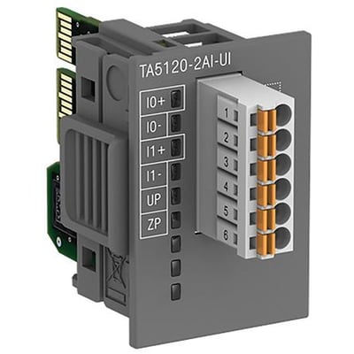 TA5120-2AI-UI: AC500-eCo analog input option board. 2 AI: U, I. 12 Bit. Includes spring terminals.