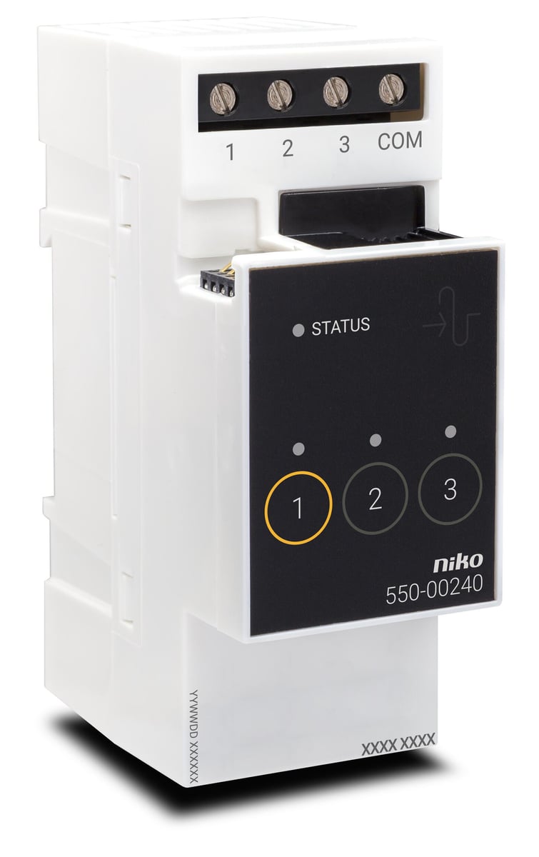 Tilslut op til tre højeffekt lysdæmpere til din Niko Home Control installation med dette analoge 0-10V styringsmodul. Nem integration og præcis lysstyring.