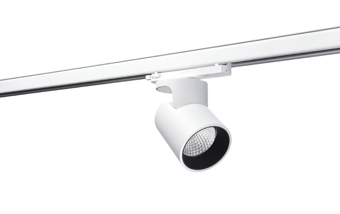 Stilfuldt og kompakt spotlight til 3-fasede ShopLine DALI-skinnesystemer. Cylindrisk form og organisk design. Ideel til butikker og udstillingslokaler.