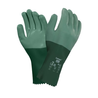 Denne 100% væsketætte handske er designet til at give optimal komfort og beskyttelse under en bred vifte af arbejdsforhold. Det bløde, strikkede strækfor uden sømme på arbejdsfladen sikrer en behagelig pasform og forhindrer irritation.