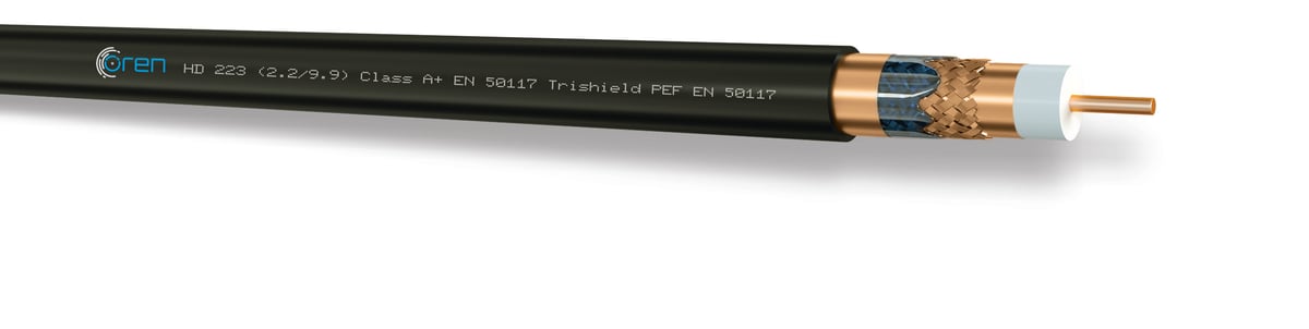 RG11 antennekabel til multimedienetværk. Opfylder klasse A+ skærmkrav med lav dæmpning og høj ældningsbestandighed.