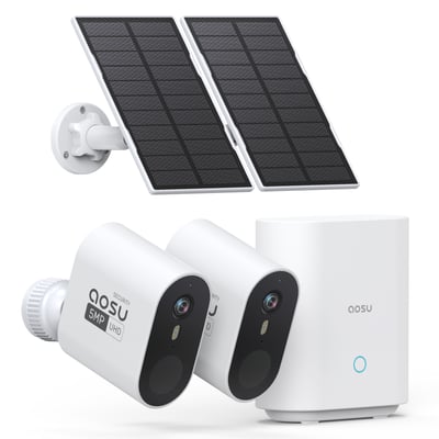 Aosu SolarCam System Max, overvågningssystem med 2 solcelledrevne kameraer, 3K