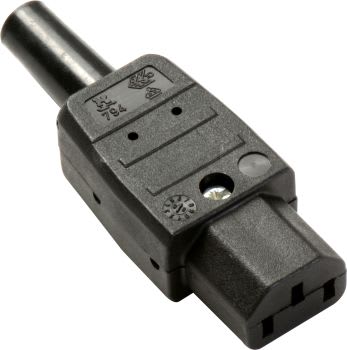 Med indbygget jordforbindelse sikres øget sikkerhed i brug. Stikket er sort og af type 794, også kendt som C13.