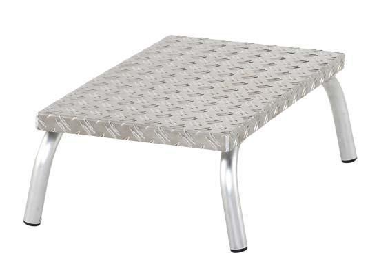 Arbejdsbuk med 200 mm dybe trin i riflet aluminium og en platform på 577x350 mm. Udført i aluminium rørkonstruktion og godkendt ifølge EN-14183.