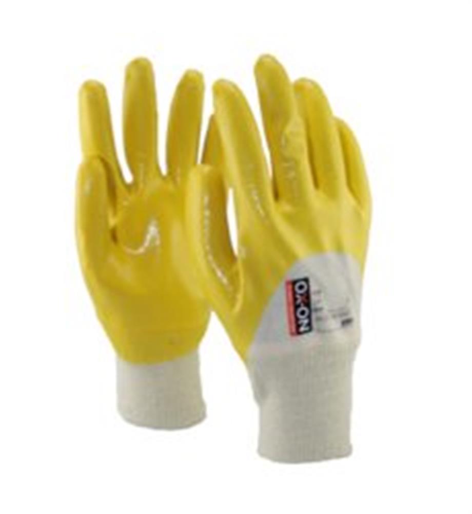 OX-ON NBR Comfort 8304 er ideel til våde miljøer. Belagt med gul NBR nitril i håndfladen og på fingrene for solidt greb. Håndryggen er lavet af bomuld. God pasform og høj slidstyrke.