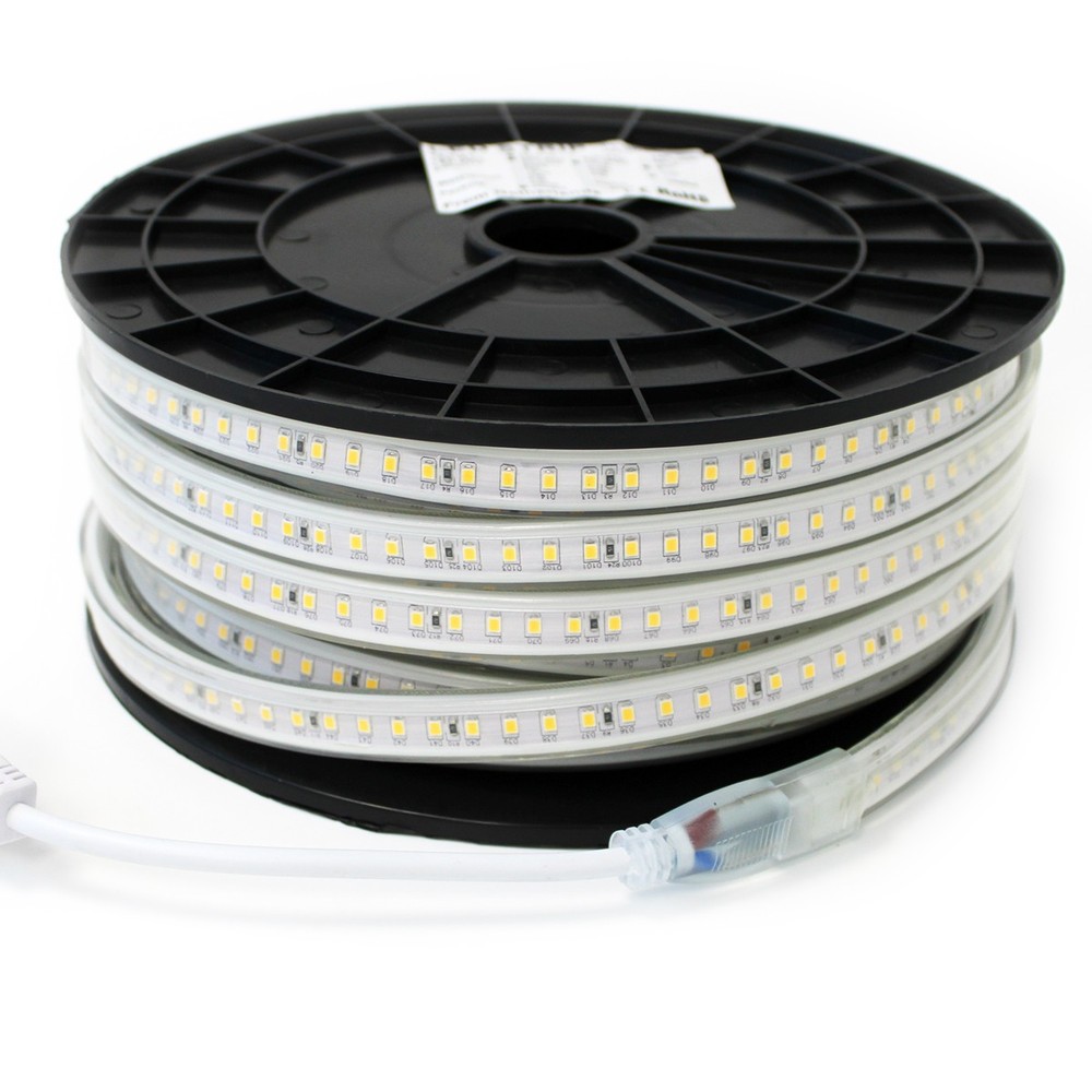 Denne 50 meter lange LED strip er designet til effektivt arbejdslys. Med en tæthed på 120 LED per meter, leverer strippen en lysstyrke på 1000 lumen per meter og et strømforbrug på 10W per meter, hvilket resulterer i et samlet forbrug på 240W for hele strippen. Farvetemperaturen er 4000K, hvilket giver et neutralt hvidt lys, ideelt til arbejdspladser.