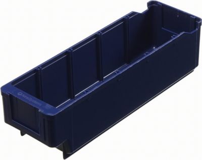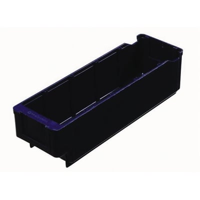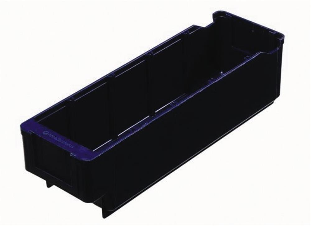 Kraftig lagerkasse i PP plast. Stabelbar og ideel til reoler. Tåler temperaturer fra -20 til 60 grader. Kan udstyres med mellemvægge og etiketter. Dimensioner: 300 x 94 x 80 mm.