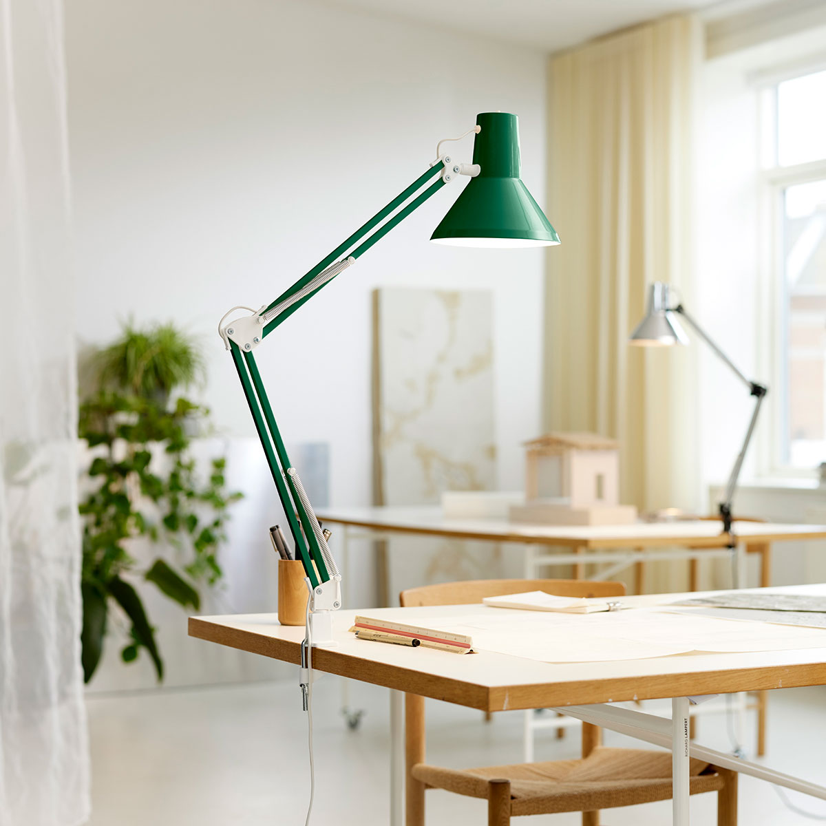 Grøn Arkitektlampe Jensen fra Nielsen Light med E27 fatning, ideel til indendørs brug. Justerbar højde og lang ledning.