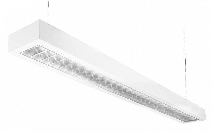 Fladt Ecoline Office armatur til nedhængt eller påbygget montage med 3000 Kelvin LED. Hurtig installation med plug-and-play. Wireophæng tilkøbes.