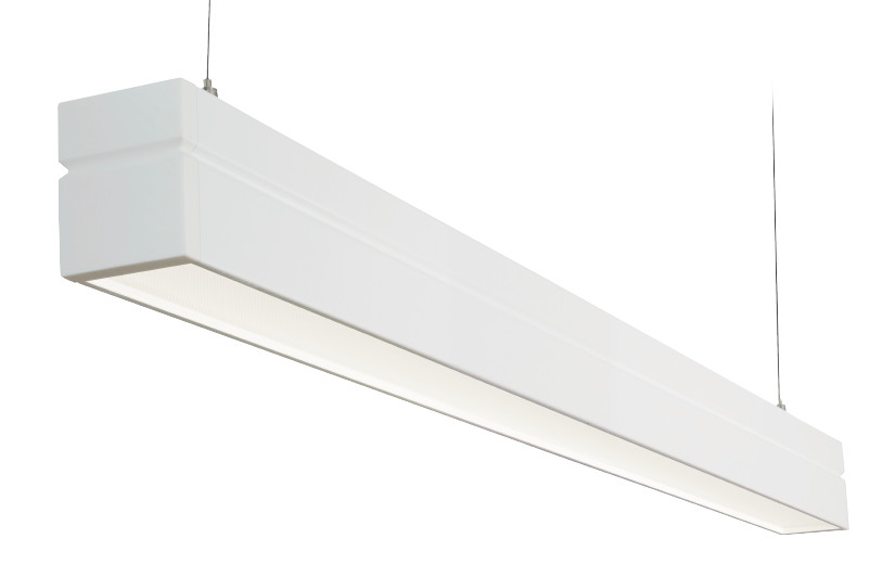 Slankt, minimalistisk armatur i pulverlakeret hvid. Med direkte/indirekte lys og forskellige betjenings- og sensorvarianter passer den perfekt til kontorer og over arbejdsborde.