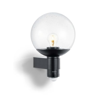 Udendørs armatur med sensor, ideel til husmure og indgangspartier. Til E27 pærer, 240° detektionsvinkel og max. 12 m rækkevidde. Med mundblæst krystalglas og dekorativ bobleindkapsling.