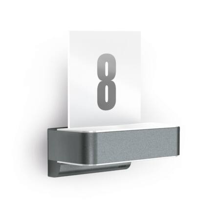 Sensorstyret udendørslampe L 820 LED IHF fra Steinel med usynlig højfrekvenssensor. Ideel til indgange og facader. Med stilfuld op- og nedbelysning og husnummerplade.