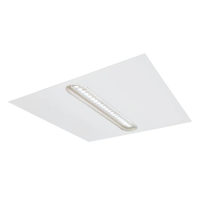 Lavprofil LED armatur til indbygning eller påbygning (kræver tilbehør). Mål: 592x592mm (T-skinne) eller 599x599mm (skjulte loftsystemer).