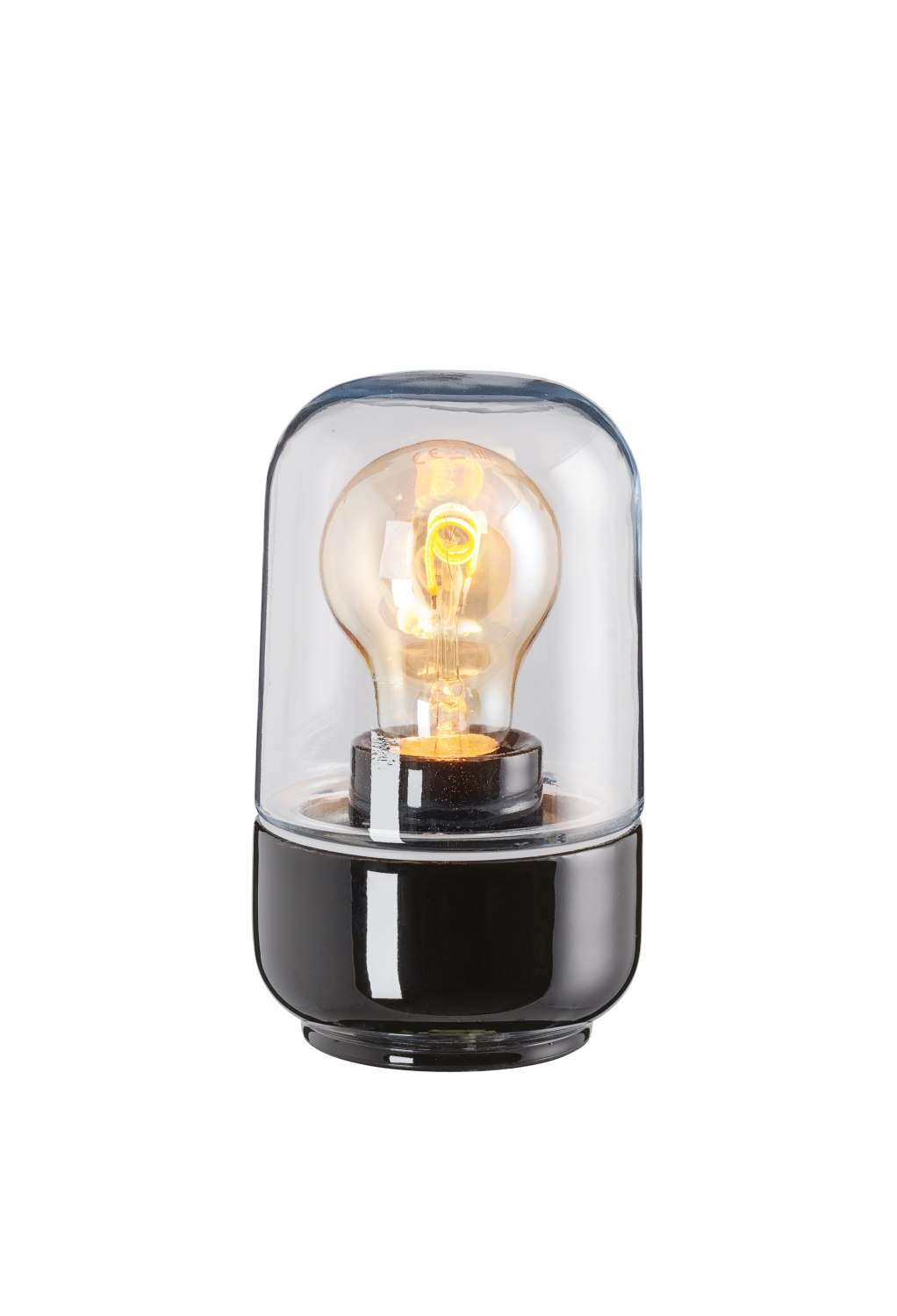 Lampen har en klar glas kuppel og silikontætning mellem glas og sokkel.