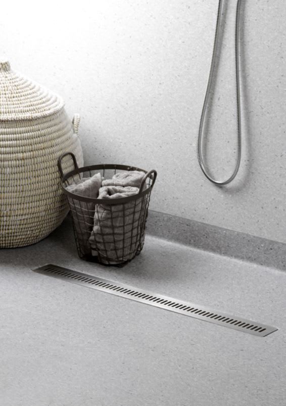 Komplet Unidrain afløbsarmatur, ramme og rist designet til brug med vinylgulve. Dette sæt er ideelt til installationer, hvor der ønskes et stilrent og funktionelt afløbssystem.