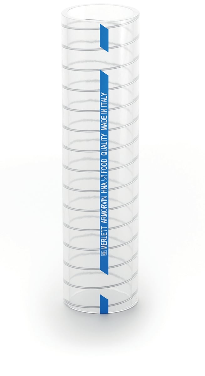 Klar PVC slange med indstøbt stålspiral. Velegnet til suge- og trykopgaver. Lugt- og smagsfri, fremstillet i levnedsmiddelgodkendt materiale (EC1935/2004).