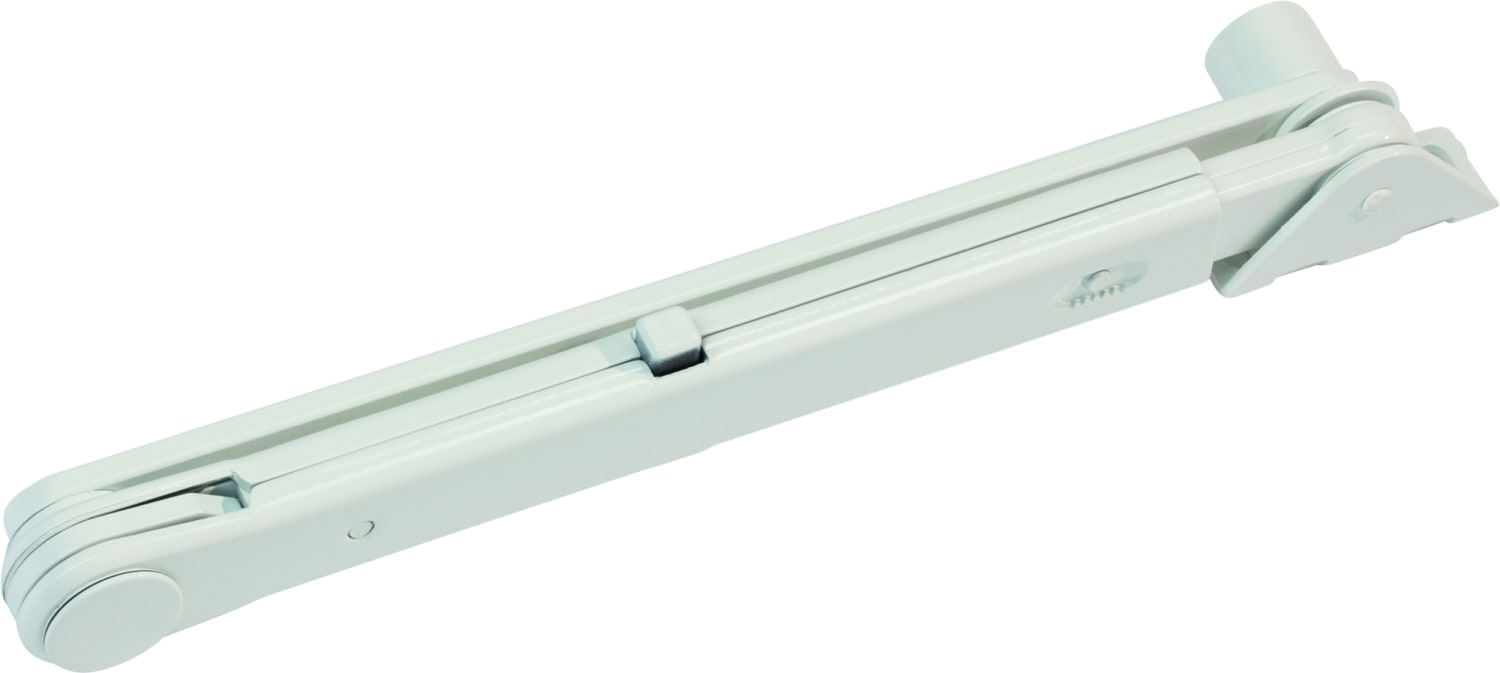 Fastholdearm til dør med TS73/83 dørpumpe. Anvendes når der ønskes at kunne fastholde døren i åben position. Stål, lakeret, hvid.