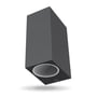 Elegant grå væglampe med dobbeltsidet lys. Perfekt til facader.