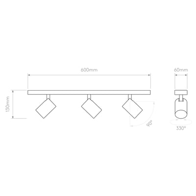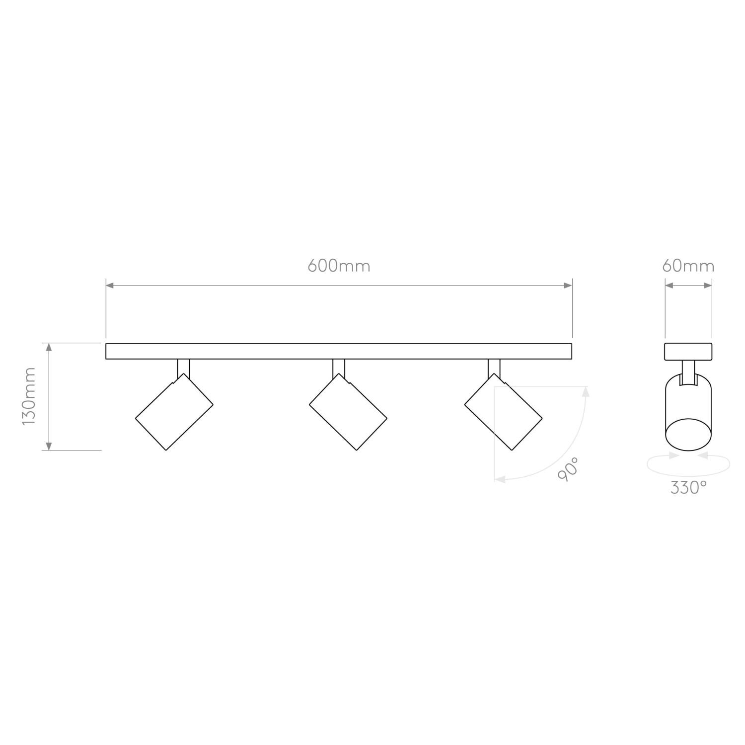 Med sine tre justerbare spots kan du rette lyset præcist derhen, hvor du ønsker det. Lampen er designet til 230V og bruger 3 x GU10 lyskilder, hver med en maksimal effekt på 6W.