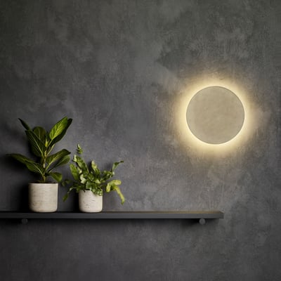 Flot udendørs væglampe fra Astro Lighting i beton. Eclipse Round Ø300mm med indbygget LED 12,6W 3000K Ra80 varmhvid 230V. IP44 godkendt.