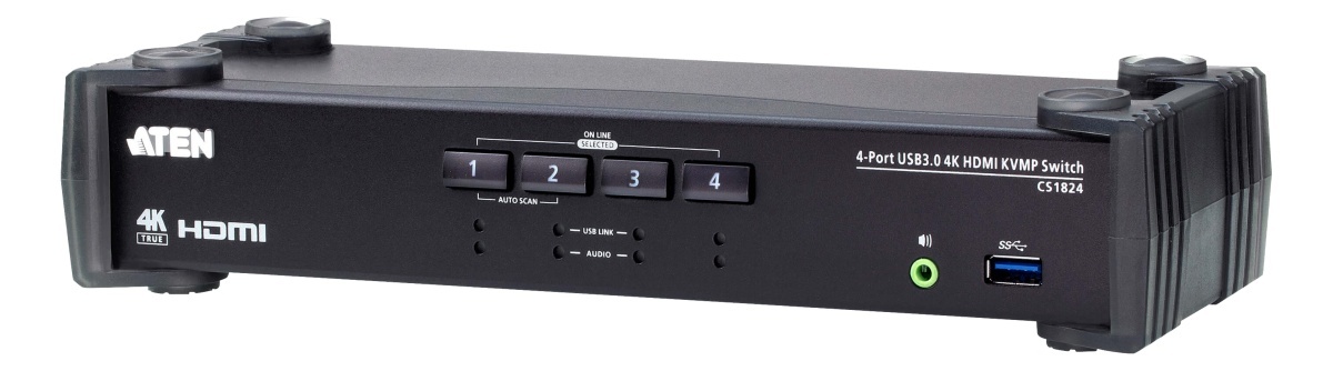 Denne 4-Port USB 3.0 4K HDMI KVMP™ Switch fra Aten giver dig mulighed for at styre fire computere fra et enkelt tastatur, mus og skærm.