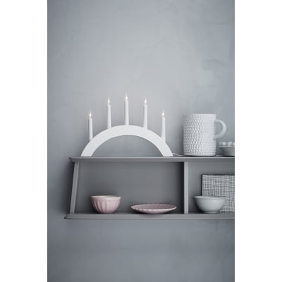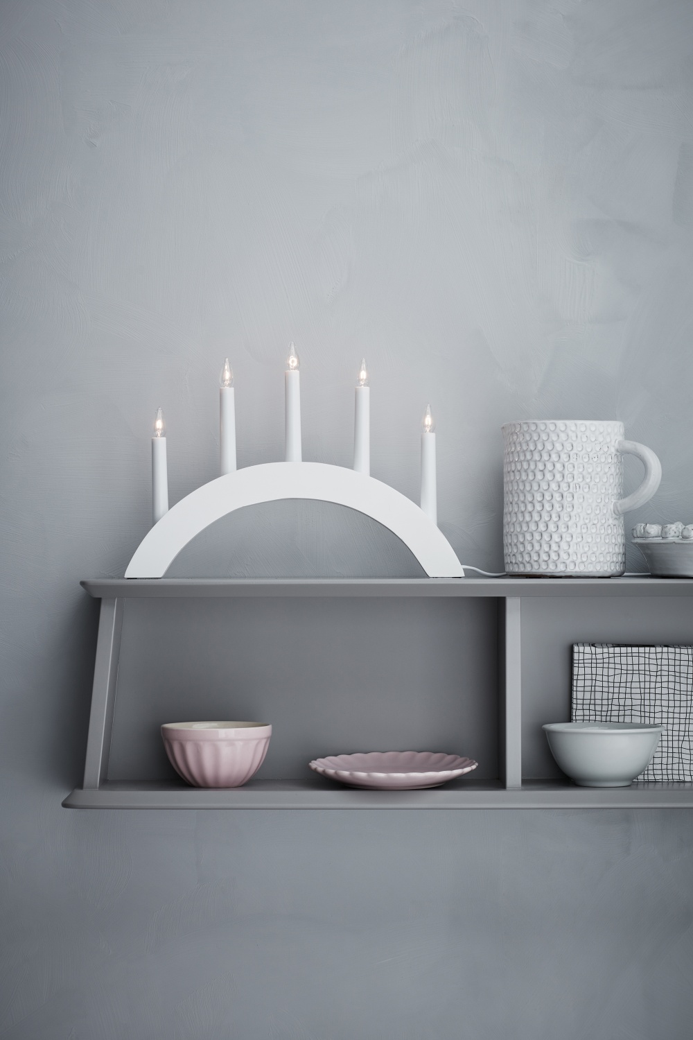 Skab en hyggelig julestemning med denne hvide Atle træstage med 5 varmt hvide lys.