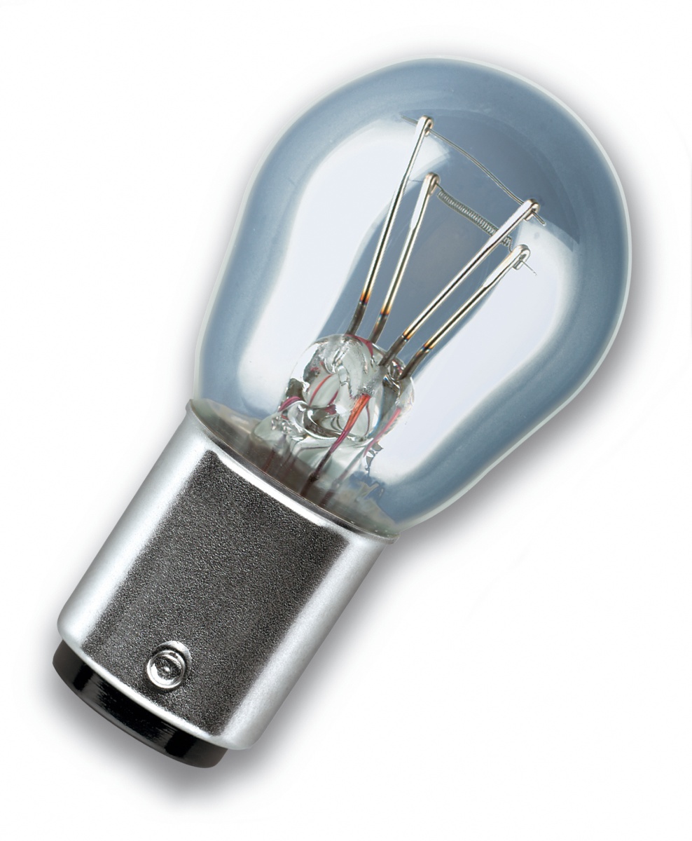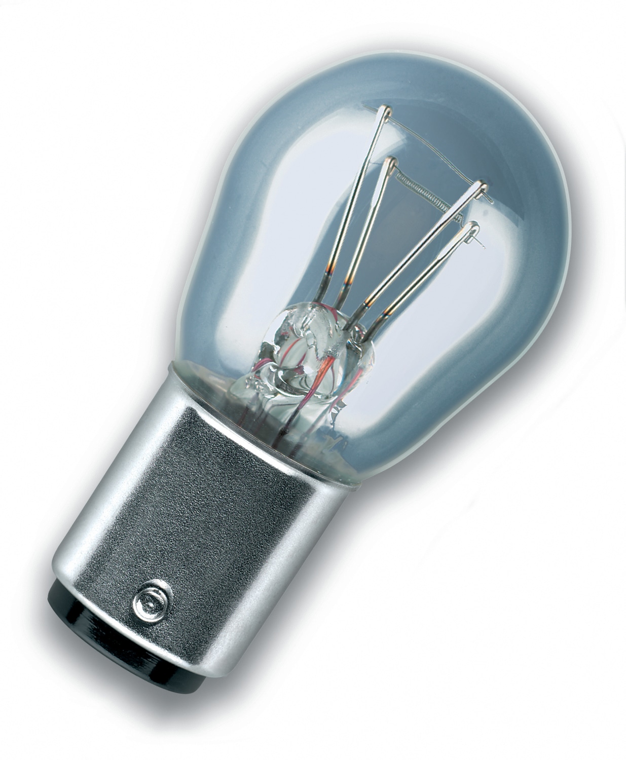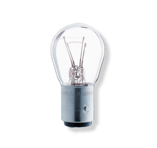 12V forlygtepære med metalsokkel BAY15d til biler. Bruges til belysning i køretøjer.