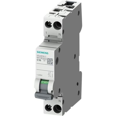 Automatsikring 230V 6KA, 1+N-polet/1 modulbredde C16.