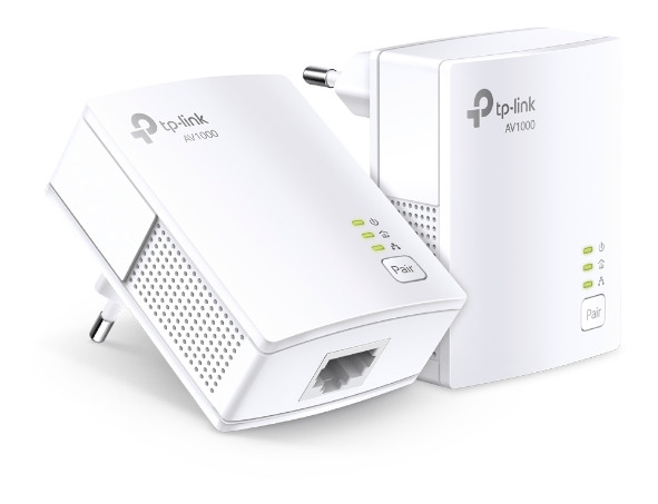 AV1000 Powerline Starter Kit med op til 1000Mbps hastighed. Avanceret HomePlug AV2 teknologi for hurtig dataoverførsel.