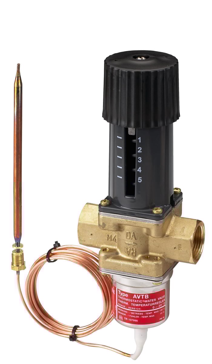 Danfoss AVTB 1/2" selvvirkende temperaturregulator til brugsvandskredse og varmekredse. Anvendes til temperaturregulering af varmtvandsbeholdere, gulvvarme m.m.